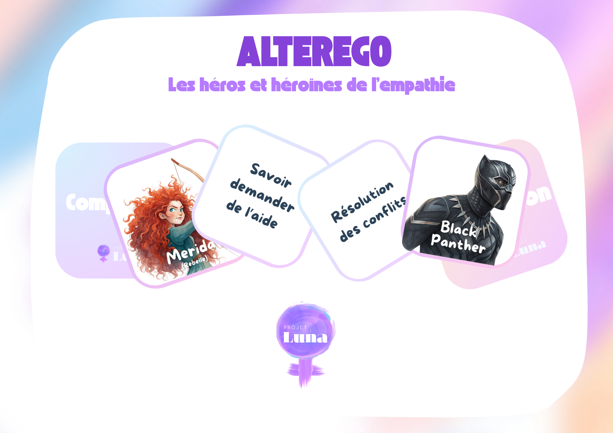 Conçu par l’association Projet Luna, Alterego invite les enfants à devenir de véritables héros et héroïnes de l’empathie à travers des mises en situation du quotidien.